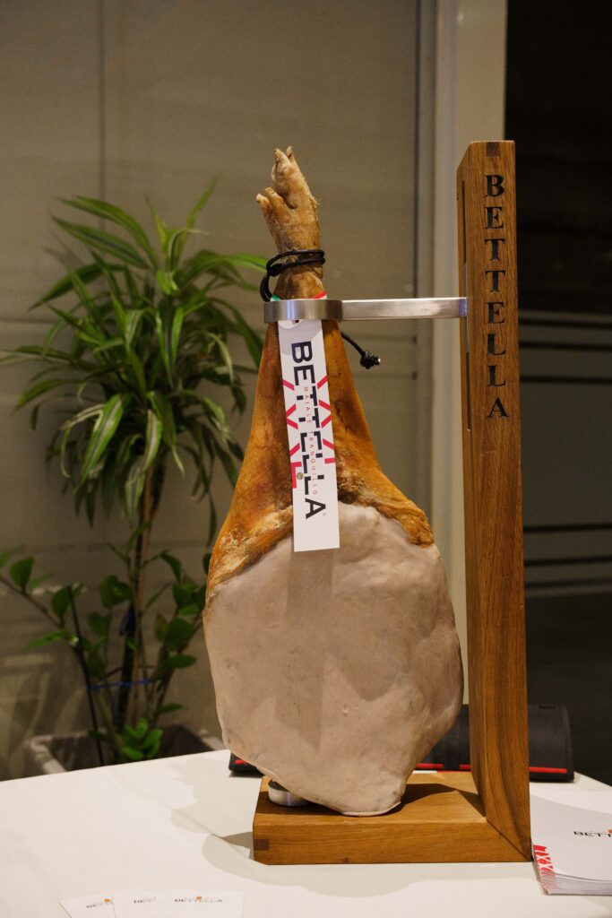 Insieme a Ivan Albertelli, patron del ristorante “Hostaria da Ivan” di Roccabianca (PR), l’azienda Bettella ha presentato nel corso della cena di gala il Cotto di Gioia, un salume che nasce dalla felice unione della pancetta e della lonza del Maiale Tranquillo®, dal gusto delicatamente affumicato e dalla consistenza fondente e la Spalla Cruda di Maiale Tranquillo®, un salume raro e speciale, che richiede una lavorazione manuale molto particolare e che solo pochi artigiani sono ancora in grado di eseguire.